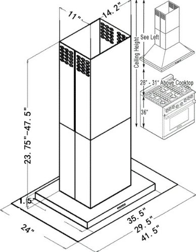 •Venting Mode : Duct (optional re-circulating kit available to convert this to a ductless island range hood)