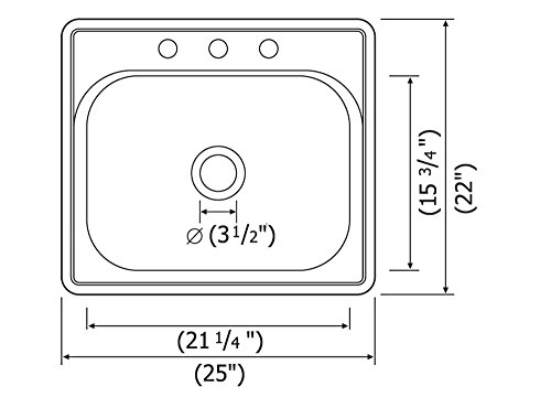 Kitchen Standard 25"X22" AKDY AKT2522C184 Bowl Depth Drop Gauge Heavy Kitchen MOUNT Premium Single Sink Stainless Steel T304