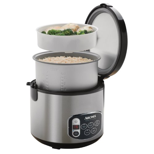 This digital rice cooker from Aroma makes perfect rice, soups, stews and even steams meat and vegetables while simultaneously cooking rice. It flawlessly prepares up to 20 cups of any type of cooked rice (10-cups uncooked), with …