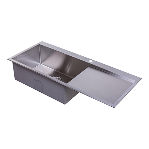 Update your kitchen décor with this stainless steel single bowl handmade sink. FEATURES : Crafted from 16 gauge scratch-resistant commercial grade 304 stainless steel, premium satin finish. The bottom of the sink has channel grooves to divert water for proper drainage. 3. 5-inch drain opening is compatible with most garbage disposals available in the market. Padded undercoated insulation over a rubber pad reduces noise while sink is in use. Convenient right hand drainboard. Fits 28″ cabinet or wider (needs extra 18″ of countertop space on the right from cabinet). Limited one year warranty. ACCESSORIES : BAI 1265 Sink Strainer, BAI 1253 Chopping Board, BAI 1256 Colander, BAI 1257 Colander. SPECIFICATIONS : Dimensions – 47. 2″ x 20″ x 10″ | Cutout size – 45″ x 16″ | Drain size – 3. 5″ | Net weight – 33 lbs | Gross weight – 41 lbs | Box size – 50″ x 23″ x 13″ | Material thickness – 16 Gauge | Faucet hole – Yes | Soap dispenser hole – No | Knife holders – No | Overflow Hole – No | Number of basins – One | Mount – Drop-in, Top Mount.