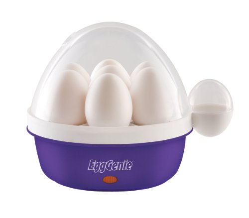 Egg Genie Electric Egg Cooker cooks up to seven eggs at the same time, choose from soft, medium or hard-boiled. Simply place eggs into the Egg genie, add the required amount of water using t he provided measuring cup and turn the unit on. The steam will cook the eggs, so you can have perfectly boiled eggs every time. Amount of water controls cooking time, alert lets you know when the eggs are done. Make a breakfast favorite, create delicious appetizers or a nutritious snack in no time.