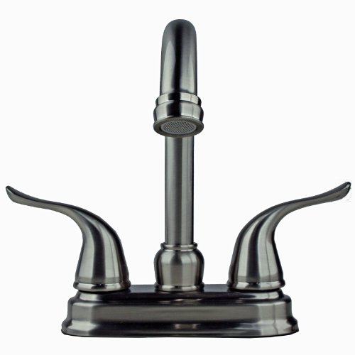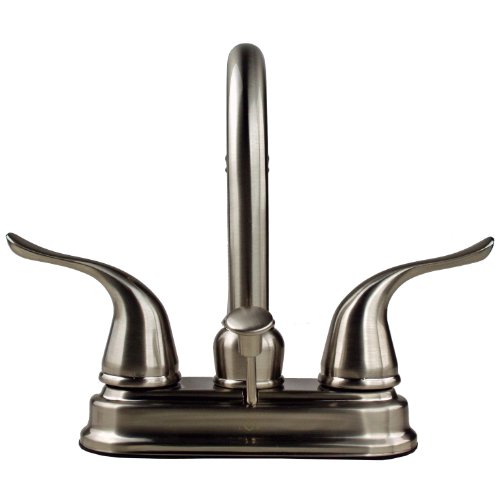 This centerset lavatory faucet from Builders Shoppe features a rotating high arc spout. The classic shape on the base and handle offers a simple yet high-end look in the bathroom. Includes matching pop-up drain assembly. …