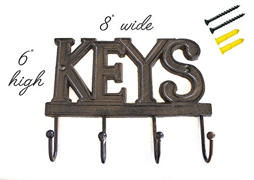 This cast iron key hanger will look right in any home. A functional piece of home decor with rustic, lasting design, strong metal construction, this wall hook set will make sure you never lose your keys again. This is a great gi…