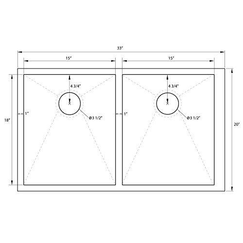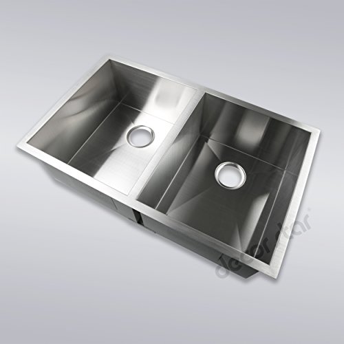 – Decor Star H-002-Z 33″ x 20″ Undermount 50/50 Equal Double Bowl 16 Gauge Stainless Steel Sink Zero Radius
