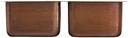 ECOSINKS K2D-3120HA Undermount Hammered 2-Hole Double Bowl Kitchen Sink, Antique Copper