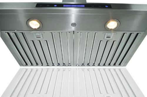 The wall-mounted range hood has 760 CFM and features 2x30W halogen lights which will illuminate all your cooking activities. It also comes with easy-to-remove, dishwasher safe stainless steel baffle filters that will keep maintenance to a minimum. The non-return air flap keeps heat from escaping when the hood is not in use. The range hood is made of stainless steel with a brushed stainless steel finish, for certain this will make one piece of classic appliance for your kitchen.