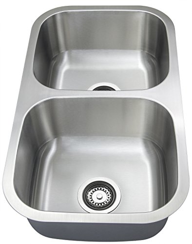 Kitchen Undermount 31"x18" Bowl Depth Double Free Gauge GOLDEN GVVU3118A09 Kitchen MOUNT Sink Stainless Steel Strainer T304 Under VANTAGE with