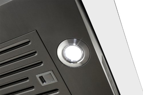 Making a bold statement in your modern kitchen design and utilization! The Golden Vantage GV-H703C-B30 model, the 30″ wall mounted range hood features a contemporary European style design in high quality stainless steel and 8mm tempered glass wing in curved shape. This wall mounted range hood is one of the best-selling of the 30″ models. The range hood has a 760 CFM motor and features 2x2W LED light bulbs. It also comes with 2 easy-to-remove, dishwasher safe stainless steel baffle filters that will keep your maintenance to a minimum. In addition, Chimney Extensions are available for this model for up to 10′ ceilings. Enhanced with a completely installed blower and fan, as well as provided with the factory-tested assurance of performance and quality, this wall hood will be reliable for years to come. Simple and very easy installation with all accessories and installation guide included. Dimension of the hood : 29. 5″ (W) x 18. 7″ (D). The range hood is made of #430 stainless steel with a brushed stainless steel finish, 2×2 W LED lighting, 3 speed LED digital panel control with adjustable military time clock. Our all new second generation stainless baffle filters make it even easier to maintain, 6″ air outlet diameter with the vent. The hood can also be easily converted ductless if it is not to be ducted directly outside, with just utilizing the optional charcoal/carbon filters installed with the motor. For certain this will make one piece of beautiful appliance for your kitchen. This range hood is ETL certified for safety approvals within US and CANADA; Fast shipping to the Lower 48 states and Canada via FedEx Ground.