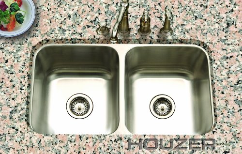 Houzer STD-2100 Easton 31-1/4-by-17-3/4-Inch 50/50 Double Bowl Undermount Stainless Steel Kitchen Sink