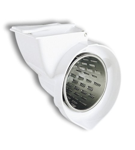 Rotor slicer/shredder for stand mixers includes 4 standard cones : fine shredder, coarse shredder, thick slicer, thin slicer. Makes thick or thin slices of firm fruit and vegetables, as well as fine or course shreds of crisp vegetables, nuts and firm cheese.