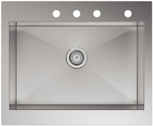 Kohler K-3935-4-NA Four-Hole Stainless Steel Sink with Shortened Apron-Front Vault for 30-Inch Cabinet Top-Mount Single Basin, Stainless Steel