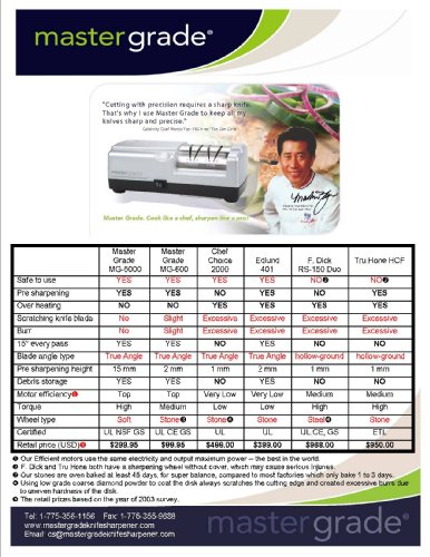 Whenever Master Grade team see there is another way to sharpen the knife, they just do it. Master Grade is designed with professional capabilities in mind, very easy to use. This premium model for home or light commercial use. Master Grade is always quality, performance and value.