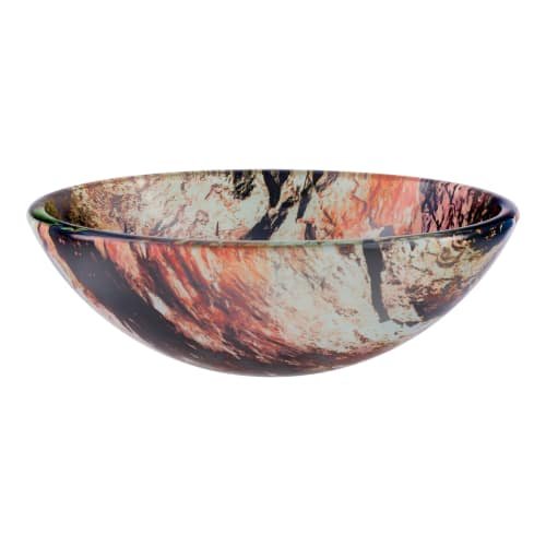 Miseno vessel sinks are constructed of high-grade tempered glass offering unrivaled durability while still providing a stylish upgrade to any home Round glass vessel sink with natural rock pattern provides the perfect balance of f…