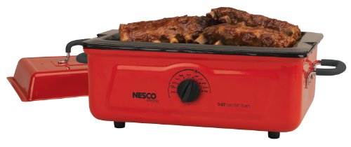 The Nesco 5-quart Roaster Oven offers is the perfect size for entertaining and small families. Great for making a batch of chili, soup, stews or even pot roast, lasagna, Cornish game hens or a whole chicken. Features adjustable, full-range temperature control up to 450 degrees and the unique “Circle of Heat” heating element provides moist, even cooking. The porcelain coated cook well and heat well resists scratches, corrosion, stains and chips. Includes chrome-plated cooking/baking rack and the removable cook well is easy to clean. Perfect for potlucks, tailgating, RV’s and camping. 600 watt.