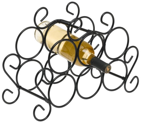 Beautiful harmony of form and function, this Oenophilia Minuet Wine Rack holds 7 bottles and makes a wonderful display on the countertop, bar, or floor. This wine rack features and elegant scroll design in metal with a black finish, making it versatile for any home. Ships flat in box and requires minimal assembly.