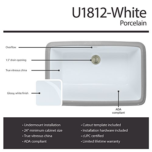 U1812-White Undermount Porcelain Bathroom Sink, Sink Only