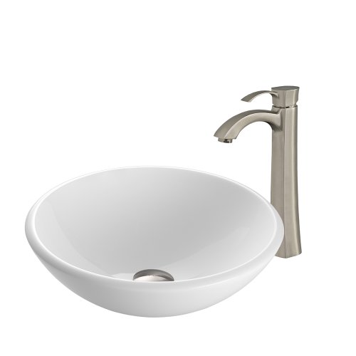 The VIGO White Phoenix Stone Vessel Sink and Vessel Faucet Set will add a simple elegance to any bathroom with opaque white and smooth rounded edges. Phoenix Stone is a revolutionary blend of crystallized glass and stone resulting in a highly durable complex material. Its scratch resistant and non-porous surface means fading and discoloration are a thing of the past. The VIGO faucet features a modern single lever for temperature control. This faucet is created using top quality components, including a high quality ceramic disc cartridge means a drip-free, long lasting faucet. All VIGO finishes resist corrosion and tarnishing, exceeding industry durability standards. Includes solid brass pop up drain and mounting ring in matching finish.
