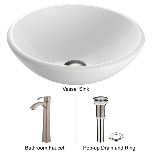 Bathroom Vessel Brushed Faucet Nickel Otis Phoenix Sink Stone Vessel VIGO White with