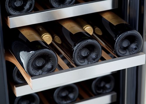 The Whynter Built-in undercounter wine refrigerator offers premium quality and innovative design ideal for your wine collecting needs. Whether for the enthusiast or the connoisseur, the Whynter built-in undercounter wine refrigerator provides affordable yet advanced wine storage functionality. This Whynter single zone wine storage system (BWR-33SD) can hold up to 33 standard 750ml wine bottles. The powerful compressor cooling system offers optimum temperature (high 30ºF to mid 60ºF) for red, white, and sparkling wines. The front ventilation design of this unit allows for flush with cabinet undercounter installation or simply freestanding usage. The premium appeal of the BWR-33SD features an exclusive stainless steel trimmed door and a heavy stainless steel L-bar handle. The seven removable scalloped chrome racks in the unit allow for maximum storage capacity.